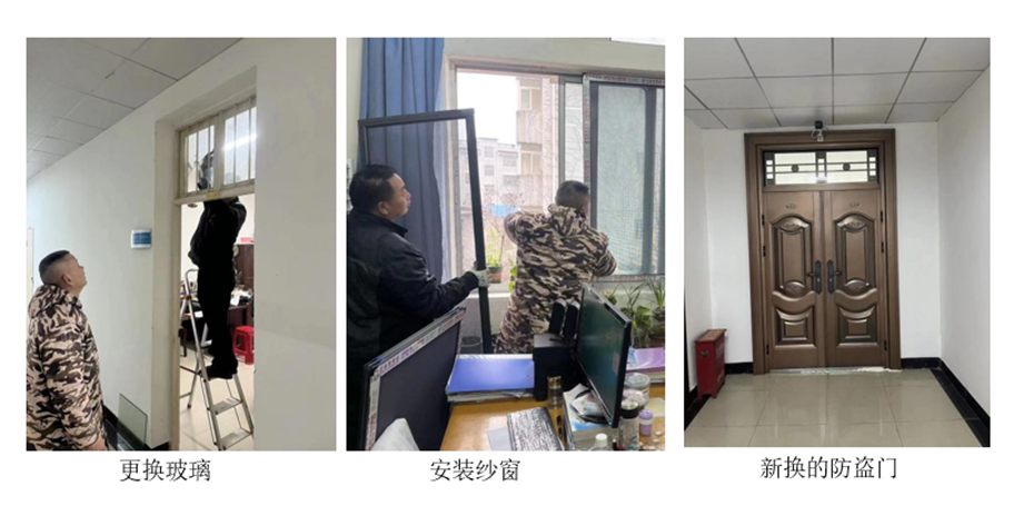2月23日,基建处组织人员深入db真人体育官网实验室开展综合维修工作,共更换防盗门、手执门及固力锁合计22把;更换平板玻璃14块;卫生间隔断及堵塞维修2间;新做金刚纱窗8块;新做防盗门1樘;屋面及室内下水管漏水维修5处;墙面修补3处。在基建处施工人员的辛苦工作下,上述维修工程都得以圆满完工,解决了实验室暗藏的安全隐患,改善了新学期db真人体育官网教学楼的教学和科研工作环境。
