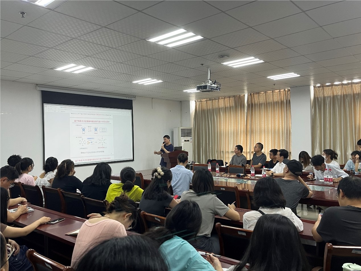 为促进公司教师跨学科研究工作的交流,积极开展跨学科专业交叉融合,助力在前瞻性和颠覆性研究取得突破,8月8日上午,国家优秀青年科学基金获得者、华中师范大学“桂子学者特聘教授”、湖北省自然科学基金创新群体项目负责人、华夏医学科技二等奖获得者孙耀教授受邀为db真人体育官网师生做了一场主题为《超分子光学探针及生物分析》的精彩讲座。db真人体育官网部分教师、全体硕士研究生参加此次讲座,讲座由经理蔡飞主持。