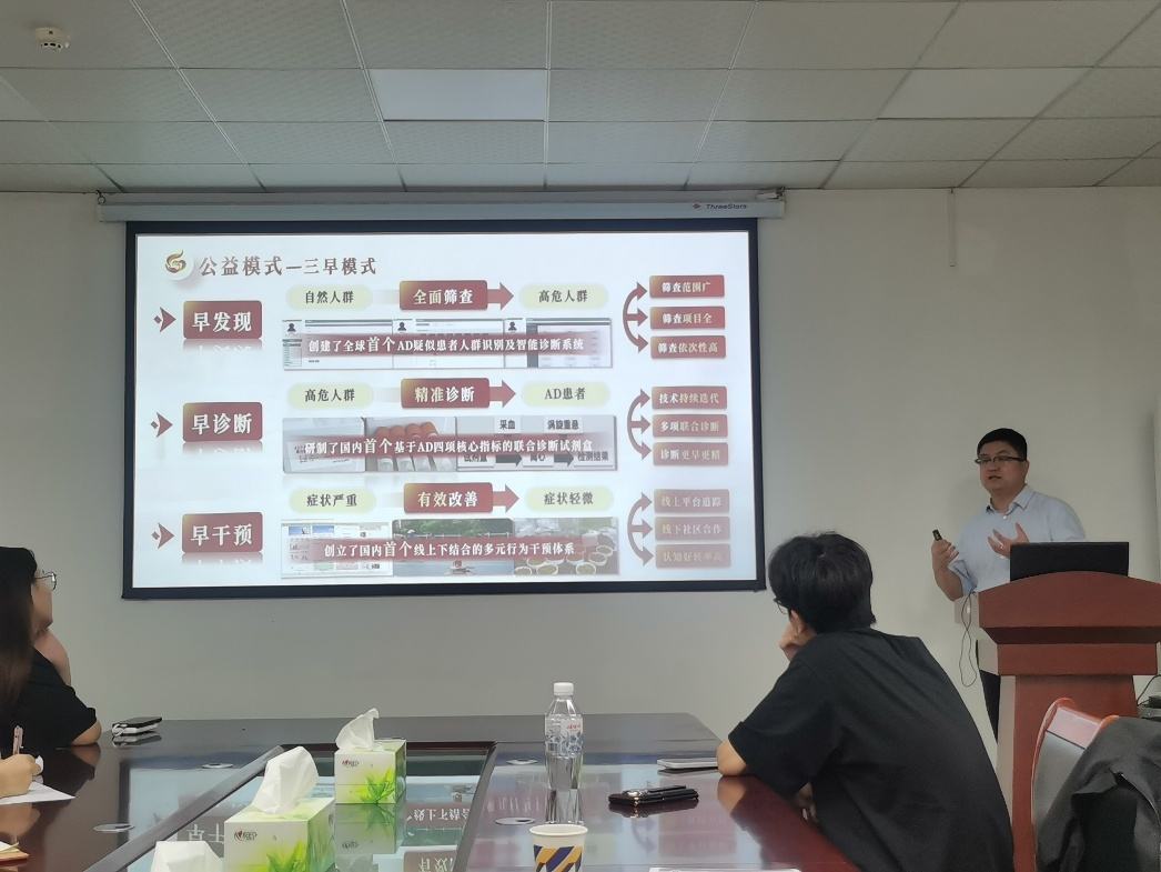 讲座中,李金泉从实验室到赛场的破局之道分享了武汉科技大学金奖项目;从痛点切入、创新突破、商业价值等方面细致阐述了该项目技术革新,聚焦工业废料资源化利用,如何让工业废料变身“绿色黄金”。李金泉还分享了针对阿尔茨海默病防治、由他担任指导教师获国家级铜奖的“青年红色筑梦之旅(公益组)”项目:脑有所忆——防治老年痴呆新模式,守护独家记忆传爱心;该项目开发“认知筛查-社区干预-家属赋能”三级防控体系;联合武汉科技大学脑科学研究院,采用数字化认知训练工具(如VR情景记忆测试);在湖北老年记忆队列研究中验证有效性,轻度认知障碍逆转率达41.3%;达成已服务27个社区,为5000余名老人提供免费筛查的公益成效。