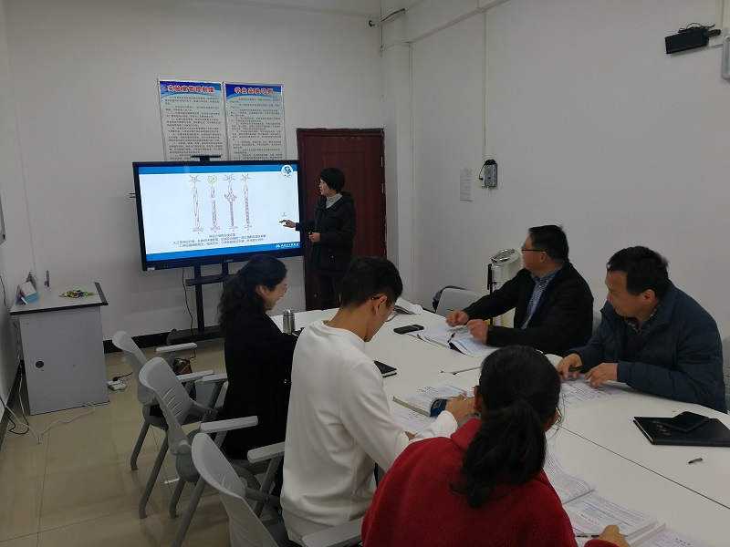 在甘亚平主任的主持下,本次活动由教学试讲和交流评课议课两个环节组成。第一个环节,试讲老师进行说课和讲课。廖文莉老师用饱含热情、抑扬顿挫的语言讲解新章节《病理学—绪论、适应、损伤和修复》;新老师王全用年轻帅气的教学台风和流利的普通话主讲《传染病—结核病》,在讲解的过程中各位老师认真听课,重点记录讲解知识内容中存在的问题。第二个环节,进行评课和问题讨论,老师们畅所欲言,各抒己见,共同讨论知识的难点、重点和疑点,如:“化生”的概念及其临床意义等,让老师们对知识的理解融会贯通。在肯定教学方法优点的同时,提出了很多的意见和建议,如:针对不同员工层次因人施教、内容的调整,适当的加入思政元素等,教学活动进行得井然有序、学习讨论气氛热情浓厚。