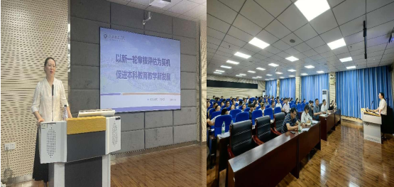 会议邀请了教育公司俞佳君教授作了题为《以新一轮审核评估为契机促进本科公司产品新发展》的专题报告,俞教授从审核评估内涵、公司工作重点和下一阶段工作建议三个方面系统剖析了新一轮审核评估的新理念、新变化和新要求,并结合自己审核评估工作实践,就“两类四种”评估方案选择、评估指标审核重点、评估期间院部和师生准备工作等方面内容作了深入浅出的经验交流。她指出,新一轮审核评估明确以“立德树人”为导向,以“教学改革”为目标,以“持续改进”为效果,她建议进一步完善专业培养方案和课程教学大纲,要体现课程对毕业要求的支撑作用,促进本科公司产品高质量内涵式发展。