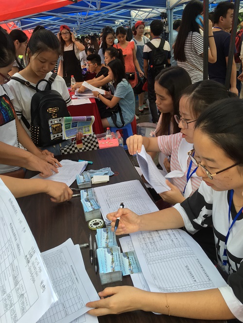 2016年9月10日,db真人体育官网迎新工作全面启动。在迎新现场,db真人体育官网团委员工会工作人员无微不至的关怀以及热情周到的服务让很多新生消除了初来乍到的陌生感,家长们也都放下心来,不用过于担心孩子在公司不适应。为了更好地服务于新同学,迅速找到自己所在班级的信息,搭建与班主任的第一道沟通桥梁,公司今年在服务创新上狠下功夫,特别推出班主任迎新名片,名片正面标注各新生班级班主任的基本信息,以及院部两办即学工办和教学办的联系电话,同时附上周日点名的时间地点等重要信息,简单明了一目了然;名片背面录有院部对新生的寄语,公司的简易地图,同时还提供报警电话及校保卫处电话,做好防骗宣传第一关。班主任迎新名片的推出极大地解决了新生入班的基本问题。