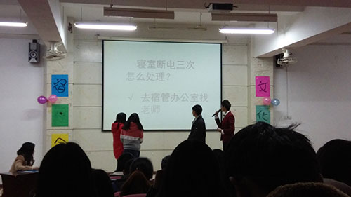 为了完善同学们对宿舍的认识,除了选手们的精彩表演之外,还安排了知识问答环节。简单的几个小问题,让同学们对宿舍安全有了更进一步的了解。最后,在全场的欢呼声中,主持人揭晓了本届宿舍文化节的一等奖得主——东区8栋614寝室,并由评委老师为获奖宿舍颁发了荣誉证书及奖品。