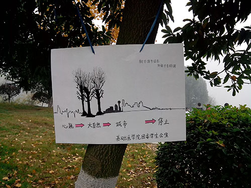 天气虽寒,却挡不住他们的热情!他们三五成群,用刷子蘸上白色石灰水,仔细地为树木穿“衣服”。工作结束后,他们齐聚行政楼前的广场,围成一圈参加有关树木类的“智力问题抢答”活动。