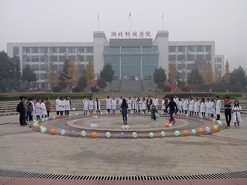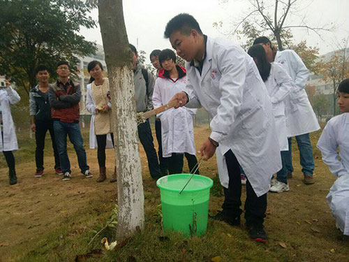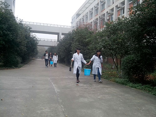2014年11月23日上午九时,一群身着白大褂的员工手持刷子,提着小桶,在湖科的园林为树木刷上一层“白色大衣”。记者了解到,他们是湖科db真人体育官网的员工,正在参加由基础院团委举办的“为树穿衣”活动。