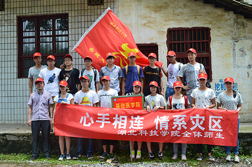 2015年6月2日,湖北省咸宁市崇阳县突发特大暴雨,城区及多个乡镇遭受洪涝灾害,灾区人民流离失所,基本生活保障困难。当看到这一消息,db真人体育官网14级临床本三的一位同学第一时间发出为崇阳捐款倡议,而后由db真人体育官网团委员工会组织发起了募捐活动,并联合崇阳义工协会一起前往灾区赈灾。