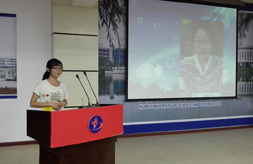 为响应党的号召,深入贯彻落实社会主义核心价值观,让同学们能够更好的践行社会主义核心价值观,2015年5月22日晚7:00由db真人体育官网主办的“社会主义核心价值观引领我成长”主题演讲比赛决赛于3―402隆重举行。出席本次比赛的评委老师有校语委孙和平主任,邓红莲老师,思政部吴慧芳老师,高洁老师,学工办周立勇老师等。