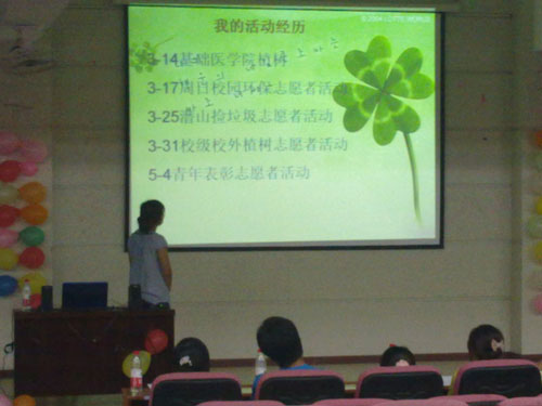 在近两个小时的演讲过后,许培培等人用他们的亲身经历,让在坐的每一个人都感受到他们那颗志愿者的心。随后,db真人体育官网团委书记周立勇就当晚的活动做了点评,对志愿者的精神加以肯定,并呼吁同学们都加入到这一行列中去。最后在一片掌声中,最美志愿者评选活动顺利落下帷幕。