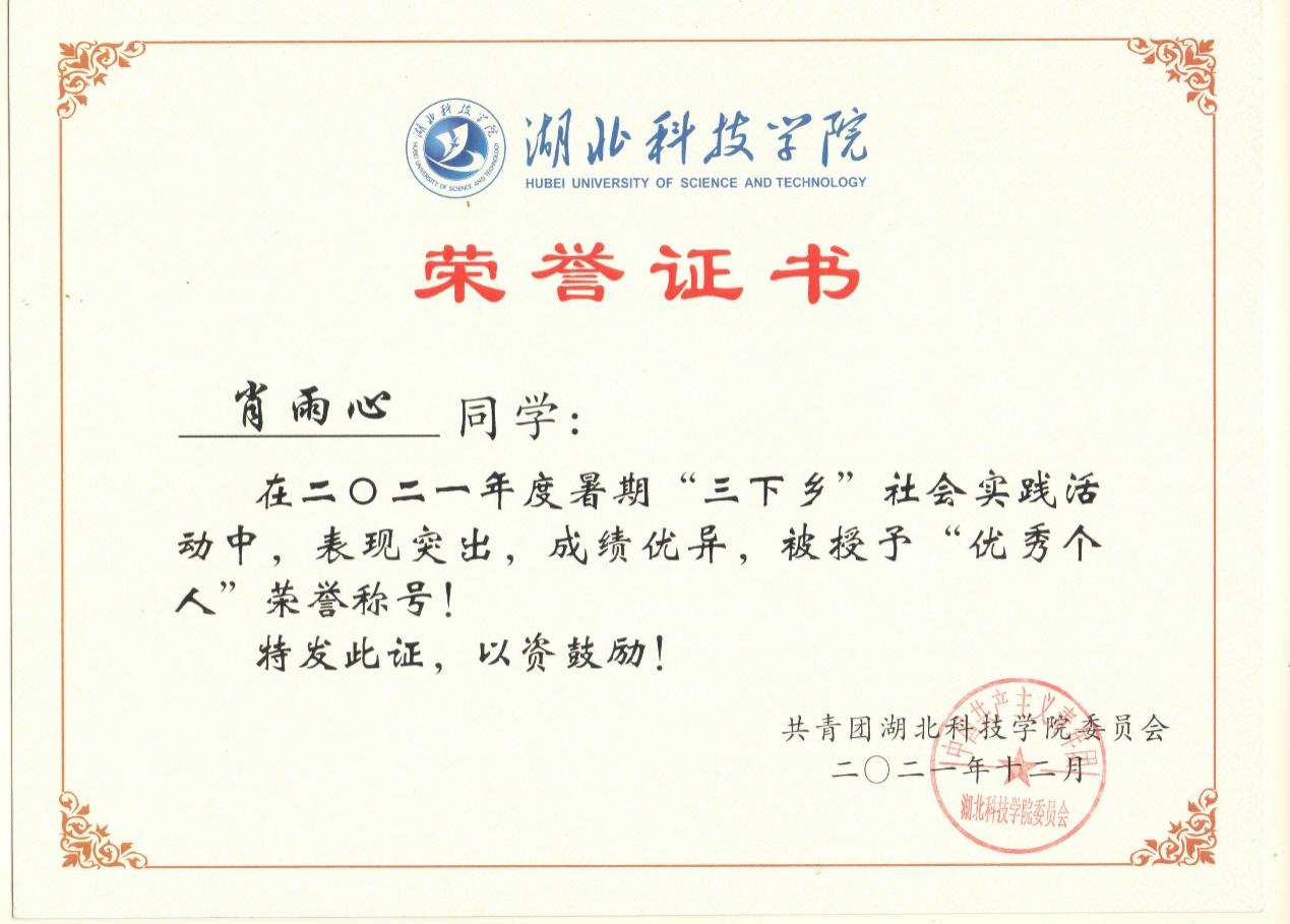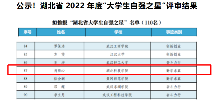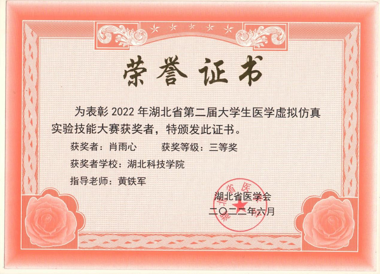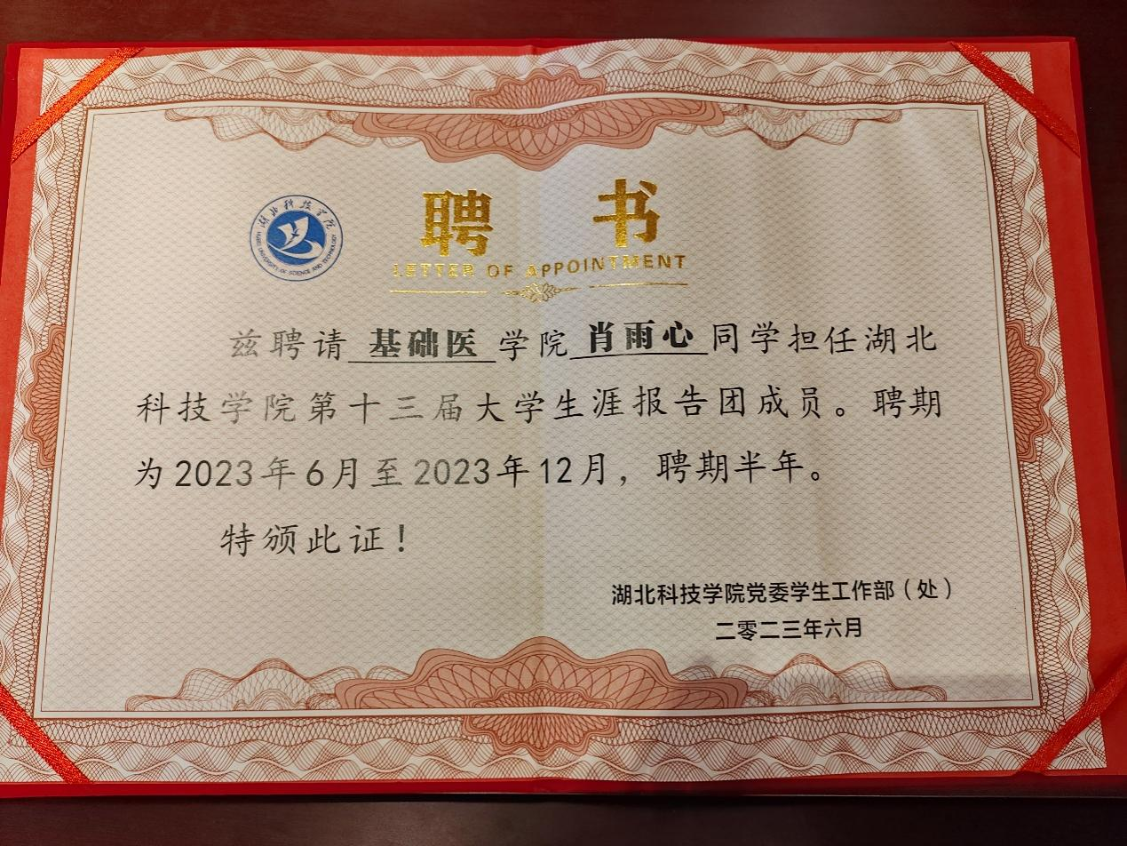 近日,由省团委、省学联组织开展的2022年度“湖北省老员工自强之星“评选结果揭晓,公司db真人体育官网2020级临床医学专业肖雨心同学荣获2022年度“湖北省老员工自强之星“荣誉称号。