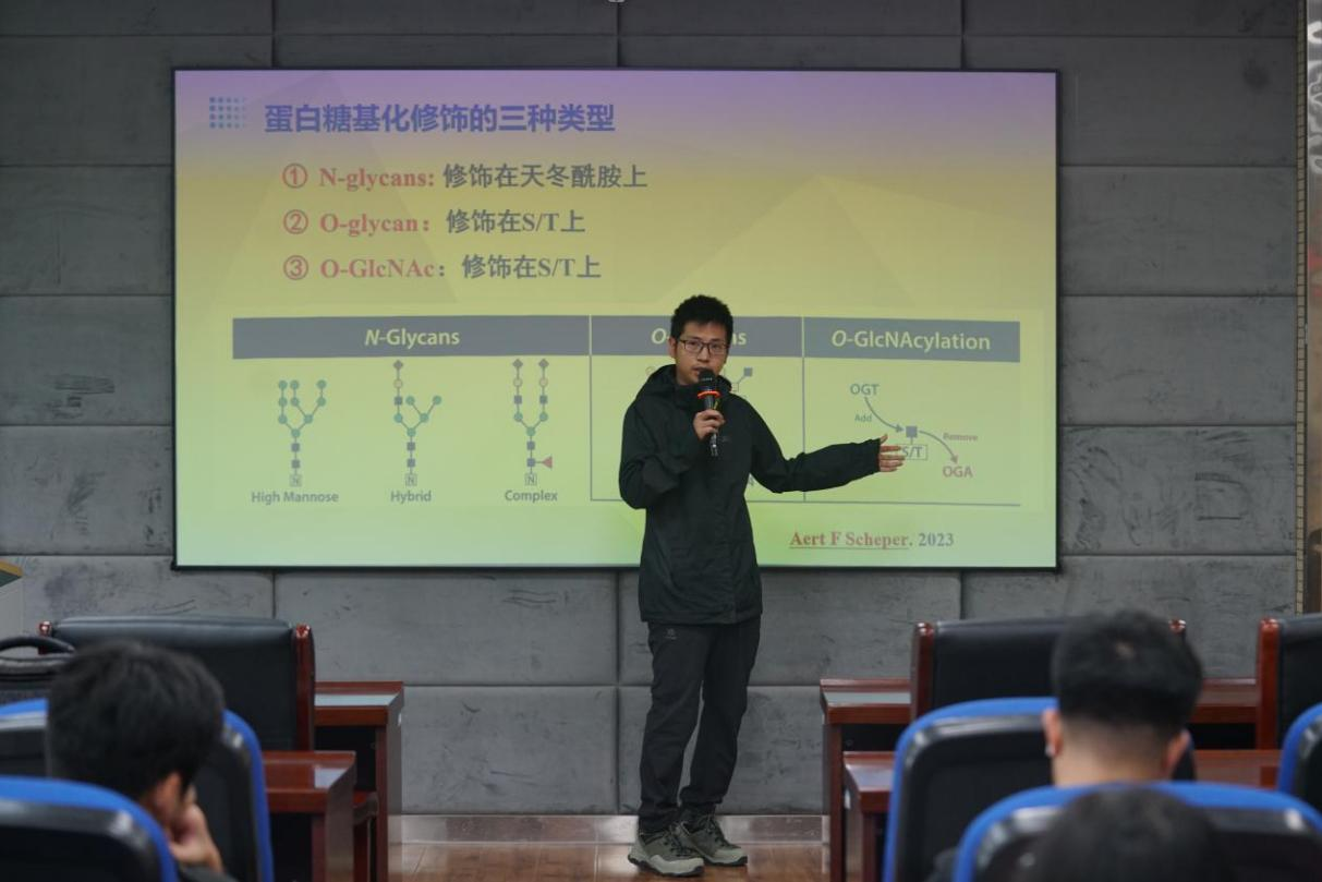 讲座由db真人体育官网生物化学教研室的博士苏延停主讲。苏博士首先从生物化学的角度介绍了糖类的分类、结构功能及其在人体内的代谢途径。他指出,糖类是含有多个羟基的醛或酮类化合物,根据结构和功能的差异,可分为单糖、寡糖和多糖等。这些糖类不仅是细胞能量供应的主要来源,还参与细胞间的信号传递和结构构建。