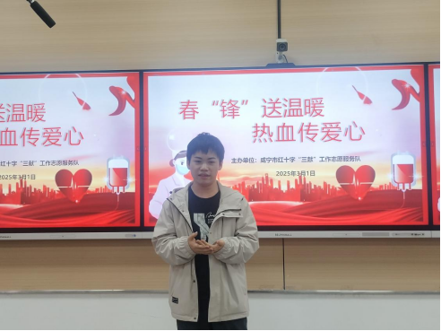 活动伊始,“三献”服务队队长潘占军代表三献服务队致欢迎词,他的话语饱含激情,如同一把火炬,瞬间点燃了在场所有人的志愿服务热情,为活动开启了一个完美的篇章。崔芳芳同学对“三献”服务队进行了全面且细致地介绍。通过她的讲述,同学们对这支专业且充满爱心的志愿服务队伍有了更透彻地认识。