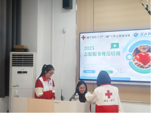 (通讯员:李纪桐 洪莹莹,审核:佘同辉)3月1日下午,在第62个“学雷锋纪念日”来临之际,咸宁市红十字“三献”工作志愿服务队(以下简称“三献”服务队)携手db真人体育官网2023级临床医学专业师生,于教7-101教室联合开展“春锋送温暖 热血传爱心”主题宣讲活动。100余名师生与志愿者共聚一堂,通过沉浸式课堂深化对“献血、献造血干细胞、献遗体器官”公益事业的理解。