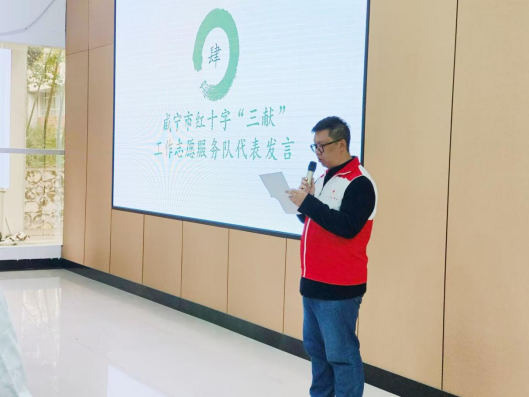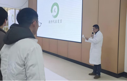 教师代表王柏军老师登台发言,他凭借深厚的专业素养,不仅为同学们深入浅出地传授专业知识,更从医者品德塑造的高度,为大家指明前行方向。紧接着,员工代表徐华天同学走上讲台,结合新时代青年的视角,分享了对生命价值和奉献精神的深刻思考与独特感悟,引发了同学们的强烈共鸣。随后,三献服务队代表高睿老师带来了一个个令人动容的真实故事,这些故事如同一股股暖流,传递出对生命的尊重与热爱,让在场师生深受触动。最后,红十字会会长郑强详细介绍了红十字会在公益领域的卓越贡献,并满怀热忱地号召同学们积极投身志愿服务,注重自身品德修养。这一呼吁如同一颗火种,瞬间点燃了同学们的热情,气氛热烈非凡。
