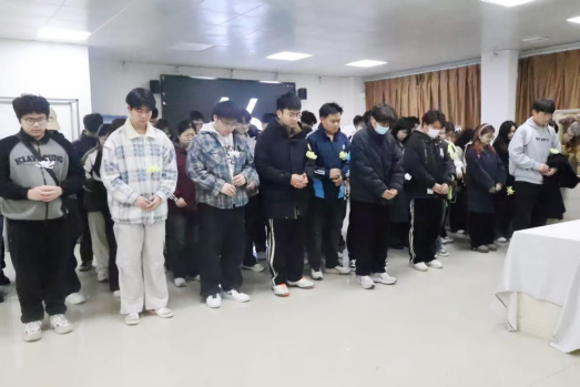 活动进入第二阶段,同学们在工作人员的悉心引导下,有序领取象征敬意的花束,整齐列队于空旷场地。大家手持花束,神情庄重肃穆,怀着无比崇敬的心情,面向捐献者方向默哀一分钟。这一分钟,时间仿佛凝固,每一位同学都在心中默默表达着对捐献者的感恩与缅怀。默哀结束后,同学们依次缓步向前,庄重地献上手中花束,每一步都承载着对逝者的深切哀悼与无限敬意。这一仪式,不仅是对捐献者的深情告别,更是对他们无私奉献精神的崇高礼赞。