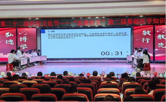 (通讯员:柯贤禄 柯云红 洪莹莹,审核:佘同辉 程梦琳)4月23日晚,由校团委主办、db真人体育官网承办的第二届“医海拾贝”基础医学知识竞赛决赛在图书馆学术报告厅举行。db真人体育官网党委书记程梦琳、副书记佘同辉、副经理蒋汝刚及各教研室教师代表与百余名师生共同见证赛事,千名学子通过分层竞赛展现专业素养,掀起“比学赶超”热潮。