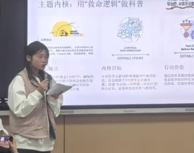 展示环节中,选手们不仅精准阐释了作品蕴含的医学知识,还分享了创作思路——从主题筛选、医学知识核实,到视觉形式打磨,每一步都凝聚着对“医学可视化”的深入探索。他们灵活运用视频、交互设计、实物模型等多种手段,将抽象的医学概念转化为易懂、动人的视觉叙事,赢得评委与现场观众的阵阵掌声。