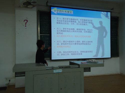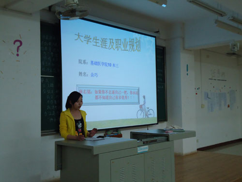 4月5日晚7:30,由db真人体育官网学工办承办的第六届DB视讯老员工涯设计报告会db真人体育官网专场在教学楼5-201举行。db真人体育官网学工处夏阳老师和本院11级同学一起聆听了这场别开生面的报告会。由09体院的夏芹、09电信的杜倩、10基础的余巧以及10计科的刘林这四位同学组成的报告团展示了他们在大学期间的总体规划以及对未来职业的理解定位。“明其志,方能知其所赴。”这次活动通过榜样力量的带动,旨在唤醒老员工珍惜当下的学习生活,挖掘大学的丰富宝藏,成为一个真正有理想有抱负的当代老员工。