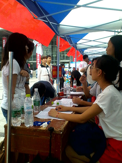 到达公司后,新生报到确认、校园卡领取及激活、缴费情况确认和住宿通知单、体检单领取,这些都由各院的员工会成员负责,之后带领新生去寝室以及熟悉校园由志愿者来完成,流水线似的服务简化了入学手续,为广大新生报到带来了极大的便利。同时还专设了家长休息处和饮水处,并安排员工会和志愿者为家长服务,对于贫困新生,公司专门开辟“绿色通道”,通过申请国家助学贷款等方式,帮助新生解决资金困难问题。公司各级员工干部及志愿者积极投入到迎新工作中,各司其职,各尽其力,积极为迎新工作的顺利开展做贡献。