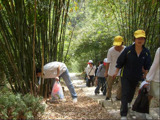 都设置有评分,以分值的多少颁发奖项的形式来激起同学们和游人的热情与积极性以达到宣传效果 ,了解到人与自然和谐共处的重要性。接着游戏环节结束便由各小组负责人带领小组成员上山拾垃圾。按拾垃圾的多少另设奖项,做到多参与多学习,多一份力多一份爱。同学们在活动中学习了环保的相关知识,并培养了自己的实践能力,在活动中大家组织有序、配合默契。增强了同学的合作精神。 青年志愿者环保在行动 通过此次青年志愿者,同学们都有所获有所得。达到了预期的效果。但与此同时我们在活动中出现的一些问题也不能回避,例如在队伍的行进过程中,由于人数太多,我们负责队伍次序的人员安排的过少,以至出现了队列的间断,还有就是游戏环节中的第四个——运气球,由于我们组织人员的失误,没有准确的把握住时间的限度,导致了游戏中出现了有关评分的争议。 虽然这次活动整体来说效果不错,但我们不会就此止步,我们期待下一次会更好!