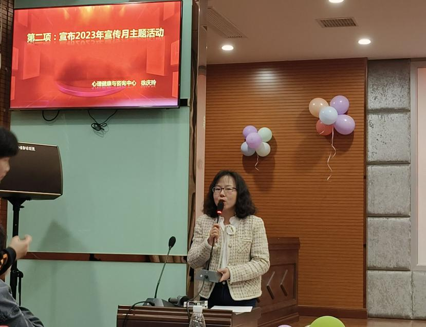 两场精彩的表演为大家拉开了此次开幕式的帷幕,并通过视频带领大家回顾了公司心理健康月特色活动的精彩瞬间。db真人体育官网黄乔木老师介绍2022年“把爱留在湖科”系列爱情活动的开展情况,心理健康中心专职教师徐庆玲老师详细介绍本届心理健康月系列主题教育活动,希望各公司能加大心理健康月活动宣传力度,让更多的师生参与进来,引导员工以更积极阳光的心态去面对学习和生活。