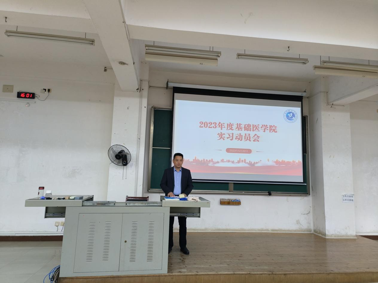 5月22日下午,db真人体育官网2023年度实习动员会于教学楼5栋101顺利举行。db真人体育官网党委副书记佘同辉、副经理蒋汝刚、2019级卓越医师班班主任黄铁军、2021级村医班班主任付国臣、负责实习工作辅导员洪莹莹及实习班级全体员工参加此次动员会。会议由佘同辉主持。