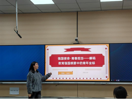 3月30日,各班团支书组织全班同学开展了以“强国使命·青春担当——解码教育强国纲要中的青年坐标”为主题的班会,深入学习了《教育强国建设规划纲要(2024—2035年)》。在教育强国的建设进程中,青年一代肩负着至关重要的责任与使命。青年不仅是国家未来的栋梁,更是实现中华民族伟大复兴的中坚力量。新时代的青年应积极践行爱国与报国的核心价值观,将个人成长与国家发展紧密融合。此次班会不仅深化了同学们对教育、科技、人才三位一体战略的认同感,也激励大家将个人发展融入国家发展的大局之中。