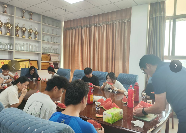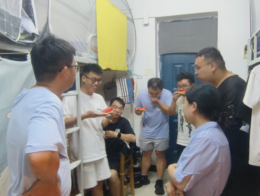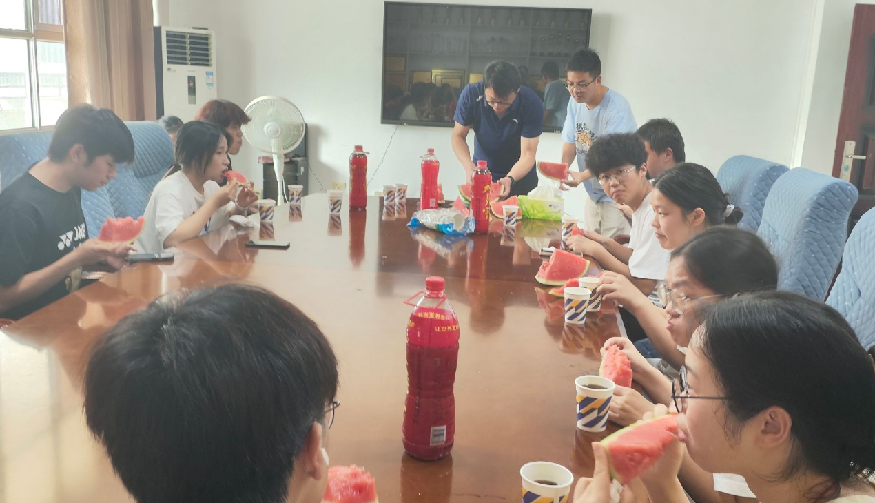 活动现场,公司为留校员工精心准备了“清凉礼包”,包括王老吉凉茶和西瓜。佘书记亲手将西瓜分发至员工手中,并详细询问了同学们的科研进展与生活需求,叮嘱大家注意劳逸结合,做好高温天气下的防暑防护。