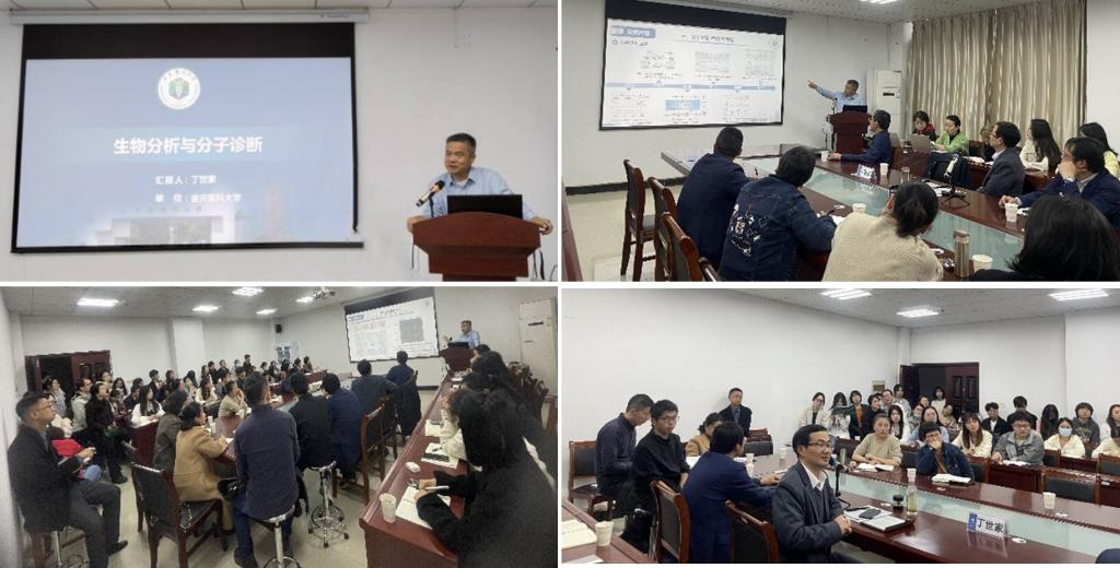 为推动基础研究成果向实际应用转化,把基础研究与应用转化紧密联系在一起,4月4日下午,重庆医科大学特聘教授-拔尖人才、国务院政府特殊津贴专家丁世家教授受邀为db真人体育官网师生做了一场主题为《生物分析与分子诊断》的精彩讲座。db真人体育官网经理蔡飞、副书记佘同辉、青年科研骨干及全体硕士研究生参加了此次讲座,讲座由db真人体育官网经理蔡飞主持。
