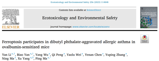 近日,DB视讯环境疾病与全健康校级重点实验室马萍教授团队在Ecotoxicology and Environmental Safety(中科院大类环境科学与生态学分区2区,小类毒理学分区1区,影响因子7.129)期刊上发表题为“Ferroptosis participates in dibutyl phthalate-aggravated allergic asthma in ovalbumin-sensitized mice”的最新成果,首次报道增塑剂邻苯二甲酸二丁酯(DBP)经铁死亡通路加重过敏性哮喘。