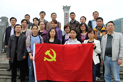 宣誓仪式由党总支书记程梦琳主持。党员代表向烈士敬献了花篮,党总支副书记李应续领誓,所有党员在纪念碑前列队,举起右手,庄严宣誓:我志愿加入中国共产党,拥护党的纲领,遵守党的章程,履行党员义务,执行党的决定,严守党的纪律,保守党的秘密,对党忠诚,积极工作,为共产主义奋斗终身,随时准备为党和人民牺牲一切,永不叛党。洪亮的声音响彻山谷,激情昂扬的誓言化为一座永不磨灭的丰碑,高高矗立在我们每一个人的心中。