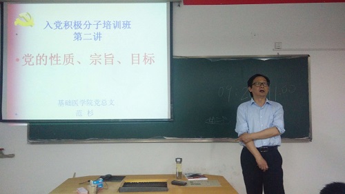 5月4日晚上,db真人体育官网分党校入党积极分子在解剖楼教室参加“中国共产党的性质、宗旨和目标”培训课,此次培训邀请到五官医公司党总支书记范杉担任主讲。