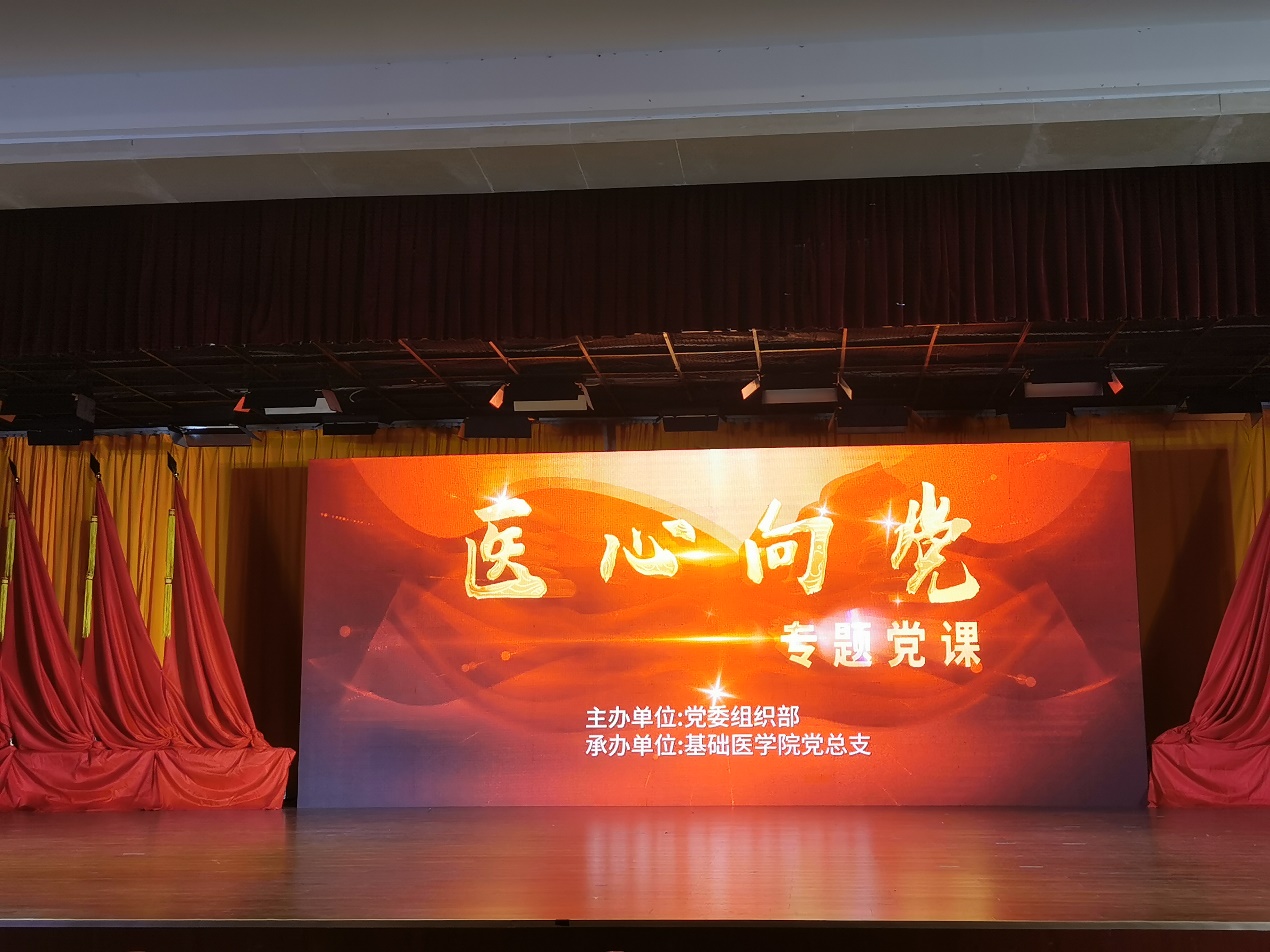 筚路蓝缕创伟业,初心不忘再起航。db真人体育官网庆祝中国共产党成立100周年暨“医心向党—专题党课”29日晚在图书馆学术报告厅隆重举行。此次活动由党委组织部主办,db真人体育官网党总支承办。纪委副书记兼监察处处长杨益明、团委书记王凡、附属第二医院临床医公司经理查文良、外国语公司党总支书记吕仲茂、马克思主义公司经理刘侣萍、党委宣传部副部长陈明吾、员工工作处处长吴玉梅、图书档案党总支书记王仁海、经济与管理公司副经理张建军、核技术与化员工物公司党总支副书记彭胜国、临床医公司附属第二医院副经理兼医学教育管理办副主任梅武轩、五官医公司党总支副书记刘伟华、艺术与设计公司党总支副书记王云等领导同db真人体育官网约五百名师生一起观看演出,共同回顾中国共产党成立100年来的光辉历程和公司医学教育56年的发展史,共同祝福伟大的党带领中国人民迈进新征程,奋进新时代。