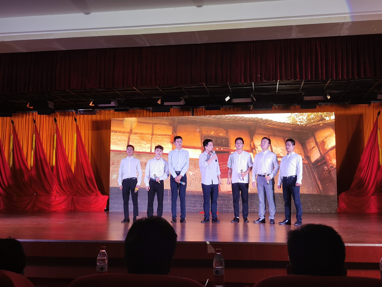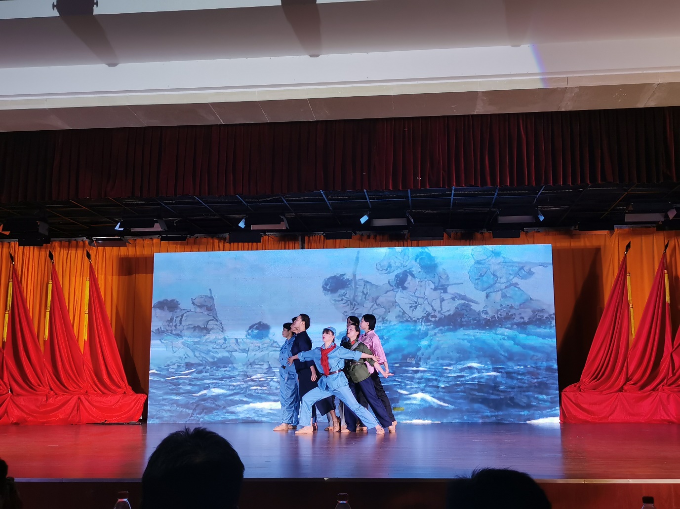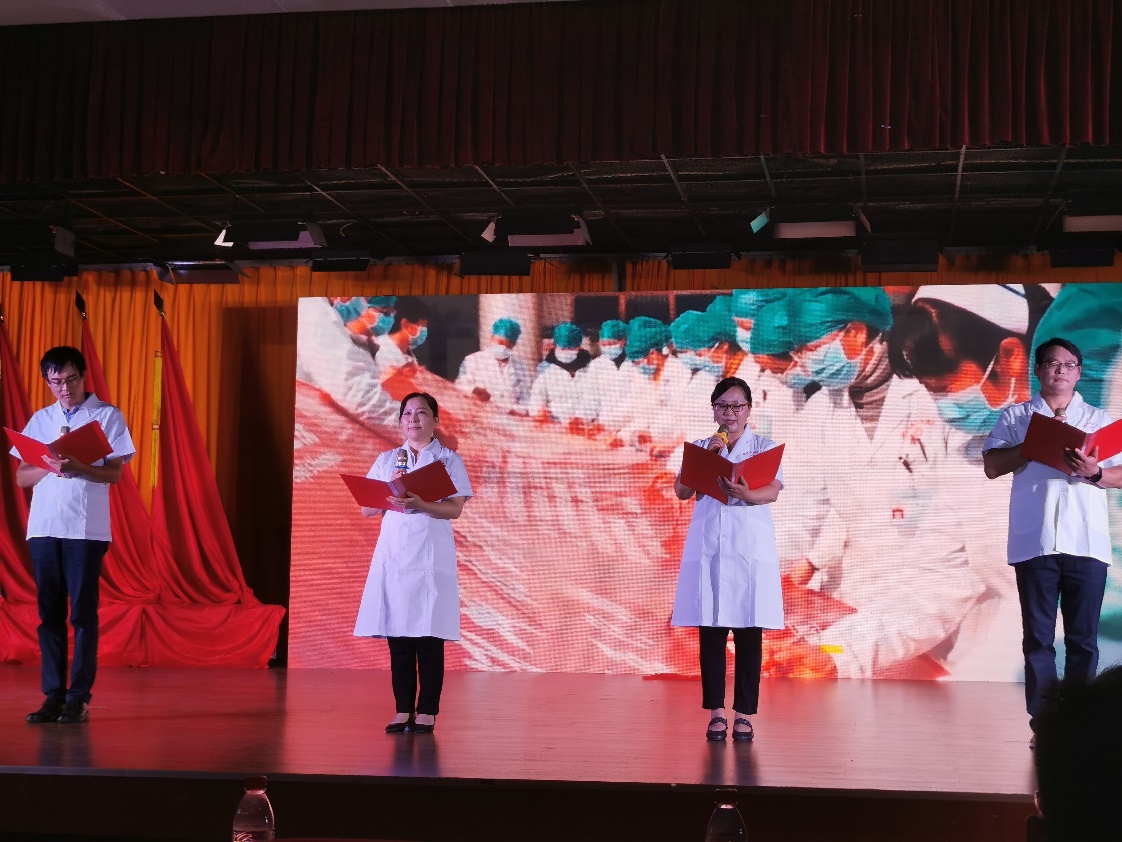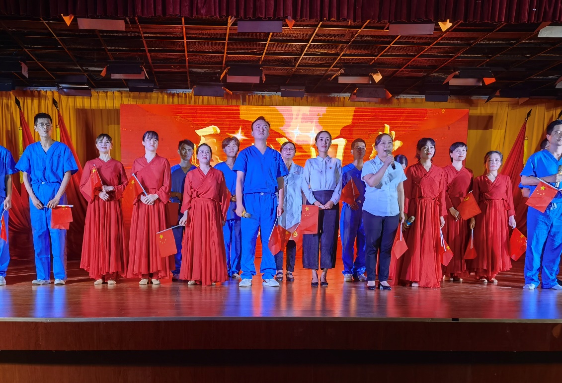 全体党员重温入党誓词拉开整场活动序幕。第一篇章—旗帜,以纪录片和情景剧《红船》相结合,再现了近代以后中华民族饱经磨难,无数仁人志士前赴后继寻找救国救民真理,直到1921年,中国共产党诞生,中国革命的面貌焕然一新;情景舞蹈《八女投江》生动展现在抗日战争的沙场上,中国共产党团结带领中国人民淬火成钢的伟大历程。第二篇章—信念,情景剧《我要去》讲述1965年为响应毛主席“应该把医疗卫生工作的重点放到农村去”的最高指示,中共湖北省委在多次召开会议,湖北医公司党委经过充分讨论后决定,在咸宁办分院。以王太西老教授专访和情景舞蹈《平凡天使》相结合讴歌了一群公司建设和发展的奠基人与开拓者,放弃城市里舒适的生活,来到山区,把青春年华和毕生精力奉献在农村基层,奉献给医学教育事业,谱写了湖医咸宁分院自力更生、艰苦奋斗的创业史,用生命的烛光点亮鄂南人民健康之路。通过整理历史资料,老照片收集系统回顾了公司由湖医咸宁分院到DB视讯的发展史,从没有一间教室,没有一张课桌,除了部分仪器和药品是从湖北医公司带来外,实验室、图书室、办公室及员工生活用具均一无所有到拥有两个校区占地1861亩,1.8万余名员工的省属本科高校、转型发展试点高校、教育部本科教学工作水平评估“优秀”高校;第三篇章—守护,情景剧《老师,我长大了》、朗诵《铮铮誓言》讲述新冠肺炎疫情发生后一场举国动员上下同心的全民战役。第四篇章—追梦,通过知名员工寄语视频与音乐舞蹈《万疆》结合,体现湖科医学赓续红色血脉,医心向党,逐梦新时代。演出结束,全场起立,共同高唱《没有共产党就没有新中国》热烈掌声经久不息。