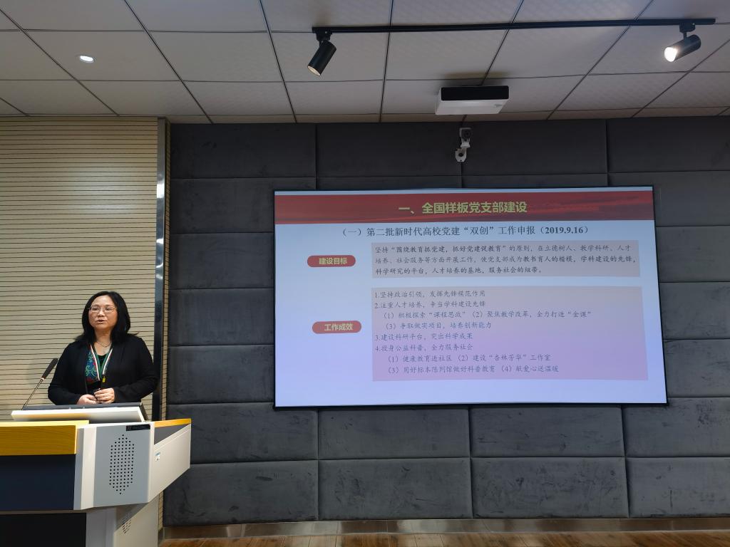 马萍教授以《全国样板党支部建设体会与国家级一流课程建设思考》为专题,深入浅出地介绍了“教育部全国党建工作样板支部建设的体会”和“国家级一流课程建设的思考”两个方面内容,以2019年第二批新时代高公司党建“双创”工作申报为案例,从建设目标、工作成效、建设方案、创新点等四个方面扼要介绍了样板支部建设情况,并结合2022年验收工作,谈到了要落实的“教育党员有高度等七个有力”的重点任务以及包括体制机制、组织建设、创新机制、建设措施在内的重要措施,为后续其他党支部申报全国样板支部提供了借鉴。同时,马教授也以教学成果“基础医学课程信息化资源的建设与实践”为案例,从高等公司课程建设二十余年沿革、金课的“两性一度”标准、基于“雨课堂”的混合式教学改革、课程思政等方面,分享了个人对国家级一流课程建设的一些思考。