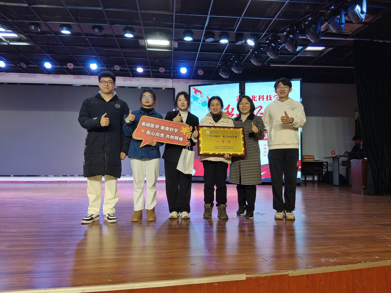 db真人体育官网员工党支部书记夏阳老师带领张艺欣、邓子恒、任怡宁、周慧4名队员突破复赛进入DB视讯“学习强国”线下知识竞赛决赛,他们喊出“基础医学、勤奋好学、医心向党、共创辉煌”的口号响彻会场,现场气氛紧张激烈,选手们表现沉着冷静、精彩纷呈,亲友团也协力同心、共同面对难题与挑战;经过激烈角逐,db真人体育官网代表队以全场最高分220分取得了第一名。到场的db真人体育官网员工观众纷纷表示,代表队取得“学习强国”知识决赛的冠军,能激发公司学子的求知欲望,热爱知识、追求创新,全面提升自身的知识素养和综合素质。