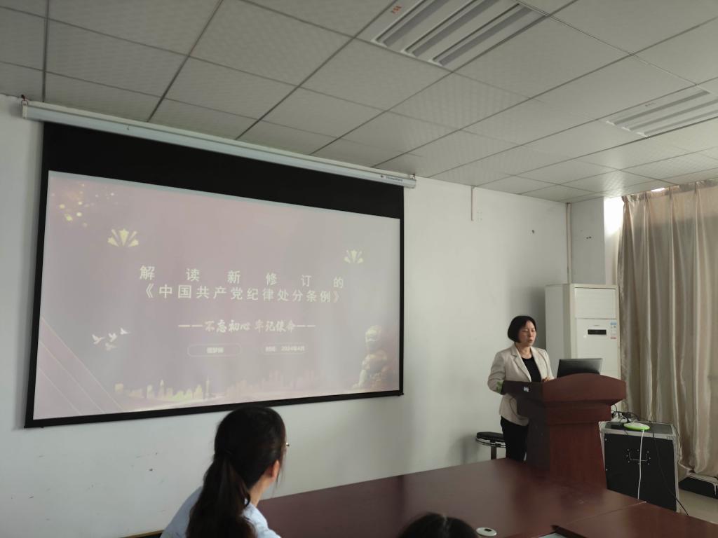 会上,db真人体育官网党委书记程梦琳讲了一堂《解读新修订的“中国共产党纪律处分条例”》纪律党课。会上带领大家详细学习了关于修订新《条例》的重要意义、主旨要义等方面的解读,重点阐述了新条例的主要内容和精神实质,强调了新条例贯彻落实新时代中国特色社会主义思想和党的二十大精神,对推动全面从严治党向纵深发展起到的重要作用。