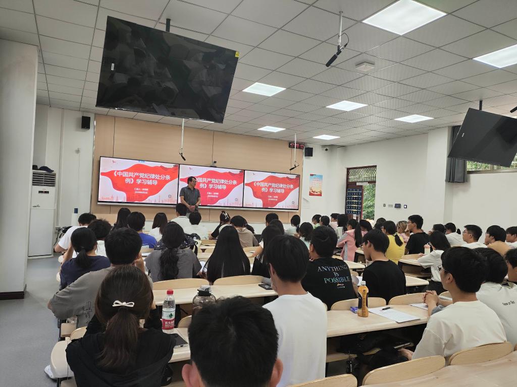 佘同辉副书记首先强调了《中国共产党纪律处分条例》的重要性和严肃性。他指出,该条例是维护党的章程和其他党内法规、严肃党的纪律、纯洁党的组织、保障党员民主权利的重要法规。通过全面贯彻习近平新时代中国特色社会主义思想和党的二十大精神,条例为推进党的纪律建设提供了坚实的制度保障。在详细解读《条例》的过程中,佘书记结合具体案例,深入剖析了违反政治纪律、组织纪律、廉洁纪律、群众纪律、工作纪律和生活纪律等六类违纪行为的严重后果。他强调,每一位入党积极分子和发展对象都要时刻保持清醒的头脑,筑牢拒腐防变的思想防线,坚决做到不越雷池一步。最后,佘书记还就如何加强党性修养、提高政治觉悟和思想境界提出了具体要求。他鼓励大家要勤奋好学,以学增智,不断提升自身的综合素质和能力水平;同时,要在实践中检验真理,坚定自己的理想信念,以实际行动践行党的宗旨和使命。