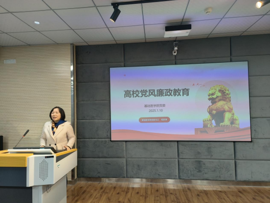(通讯员:洪莹莹 审核人:程梦琳)为深入贯彻落实全面从严治党要求,进一步增强公司教职工履职担当和廉洁意识,扎实推进“清廉湖科”建设,1月10日下午,db真人体育官网在医药楼3栋2楼录播室开展党风廉政专题教育,会议由公司经理蔡飞主持,全院教职工参加本次会议。