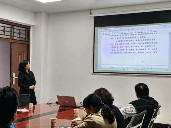 马萍首先领学公司下发的《涵育学风道阻且长用心用情行则将至---一位基层辅导员关于学风建设的实践与思考》,从全员管理责任要更加突出、制度督促作用要更加突出、教师育人作用要更加突出、辅导协同作用要更加突出、氛围育人作用更加突出、榜样建树作用要更加突出等6个方面进行研读和讨论,进一步阐述了学术和教风建设的重要性,亟需以教风建设为突破口,推动学风整体提升,构建“教与学”良性互动生态。