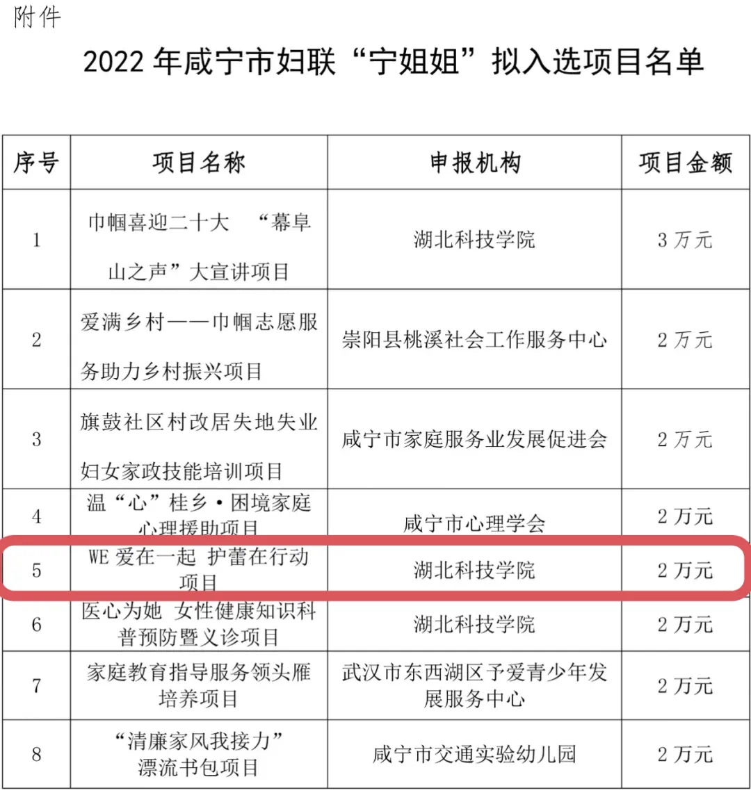 (“WE爱在一起”项目组成功入选2022年咸宁市妇联“宁姐姐”公益项目)