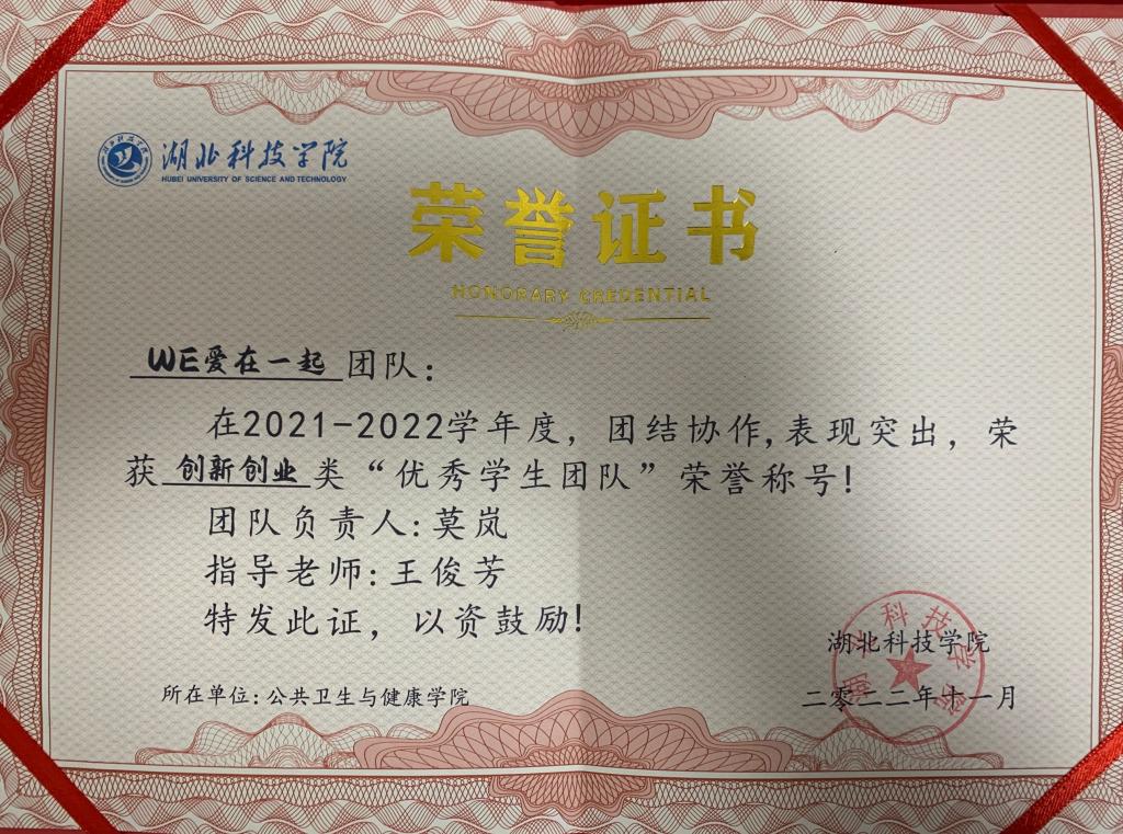 (“WE爱在一起”项目组被评为2022年湖北省青春健康工作先进单位)
