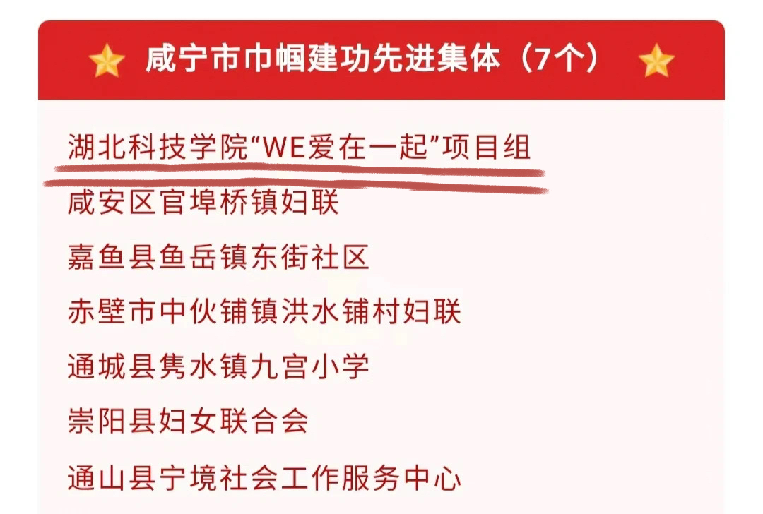 (“WE爱在一起”项目组被评为咸宁市巾帼建功先进集体)