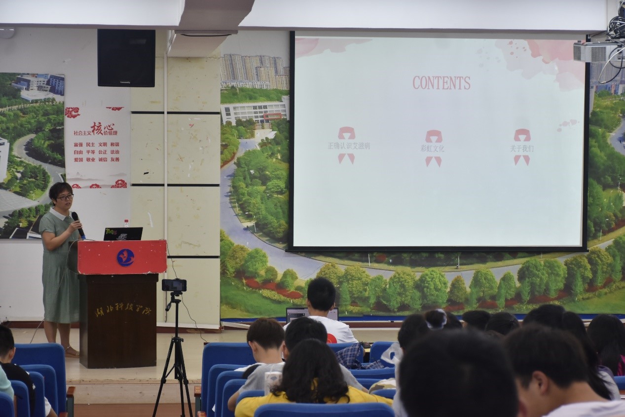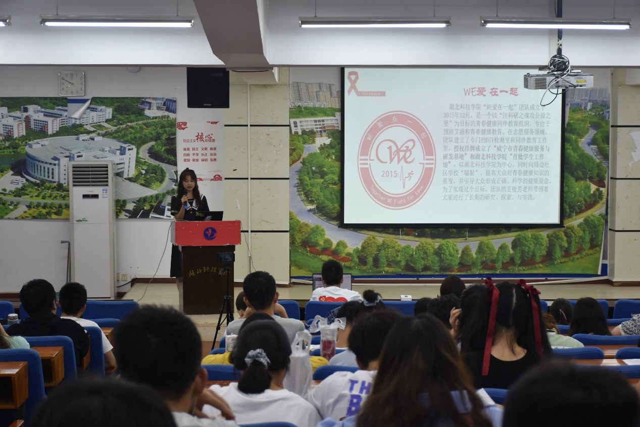 紧接着,志愿者时梦阳和大家介绍了“WE爱在一起” 工作坊的相关信息,包括发展历程,组织荣誉以及团队风采,并且再次强调知艾防艾需要你我共同的参与,同学们需要提高警惕性,增强自觉性才能预防艾滋病,遏制艾滋病的传播。