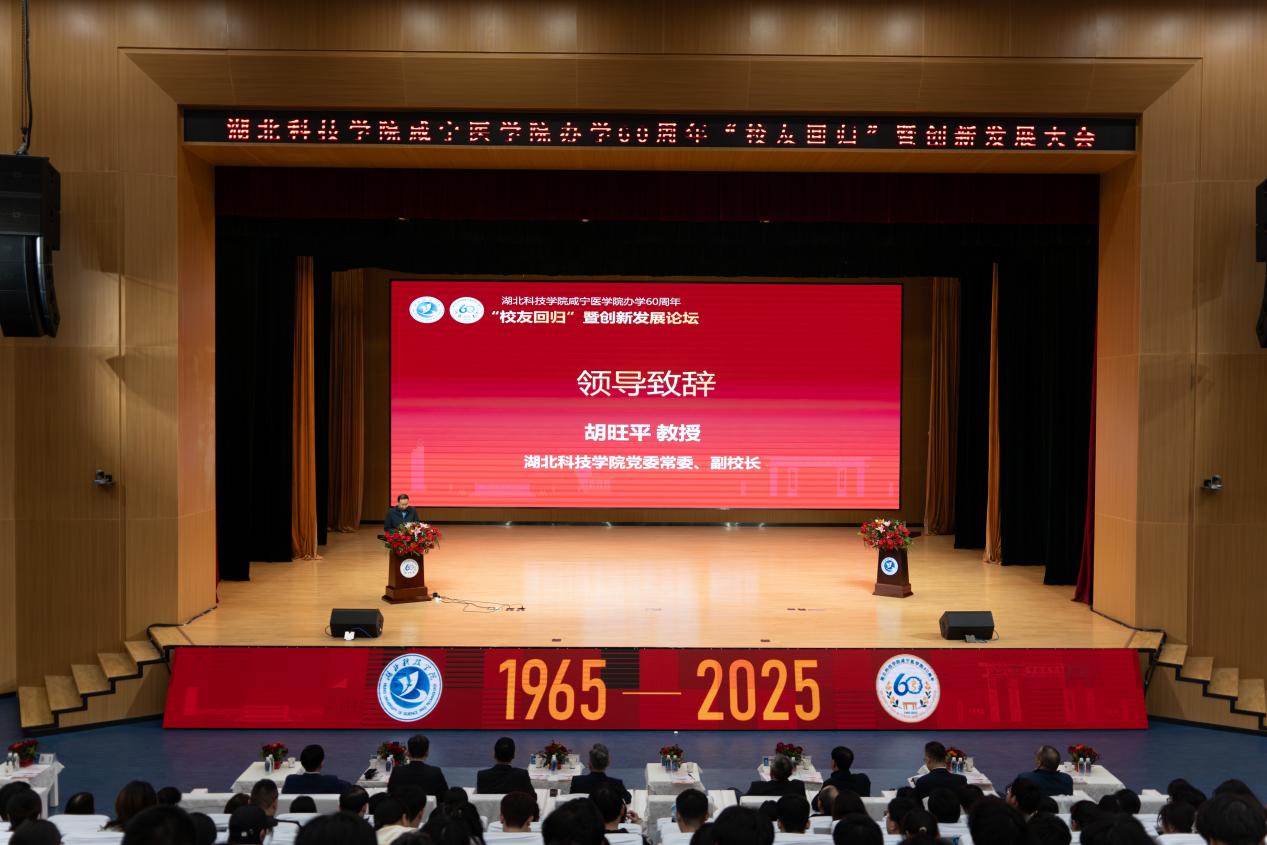 开幕式致辞,胡旺平副董事长代表公司对各位嘉宾与员工的回归表示热烈欢迎,回顾了咸宁医公司六十年来在人才培养、科学研究、社会服务等领域的贡献,向长期以来关心支持公司发展的各界人士与广大员工致以诚挚感谢,并展望了公司在新时代医学教育改革浪潮中的发展蓝图,激励全体师生与员工携手共进,续写医学教育新辉煌。